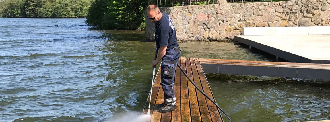 Dazu nutzen wir perfekte Mittel gegen Moos und Unkraut: In einem komplett autark arbeitenden Trailer wird Wasser auf über 100 Grad Celsius in der Heizschlange erhitzt. Mit knapp unter 100 Grad Celsius kommt das Wasser mit hohem Druck aus der Sprühlanze und vernichtet so zuverlässig die störenden Unkräuter. Das Prinzip funktioniert einfach und zuverlässig.